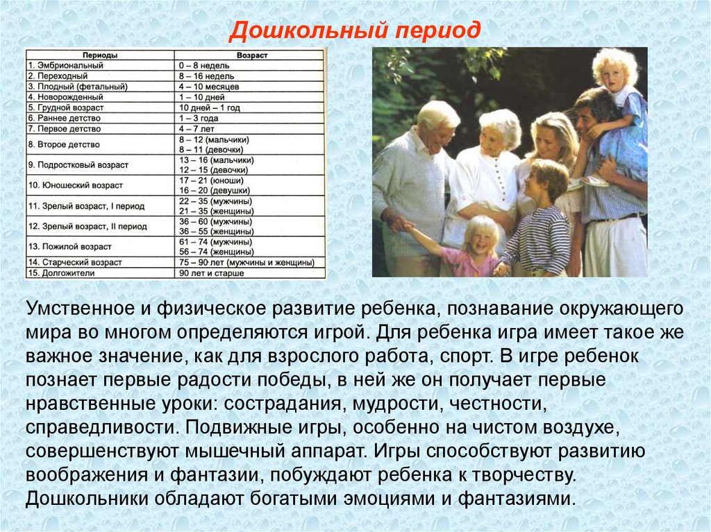 Дошкольный периодУмственное и физическое развитие ребенка, познавание окружающего