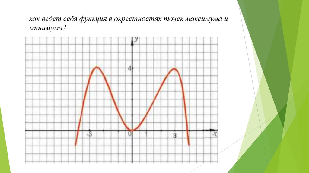 как ведет себя функция в окрестностях точек максимума иминимума?