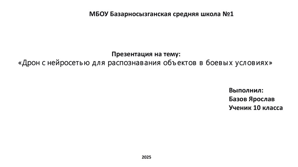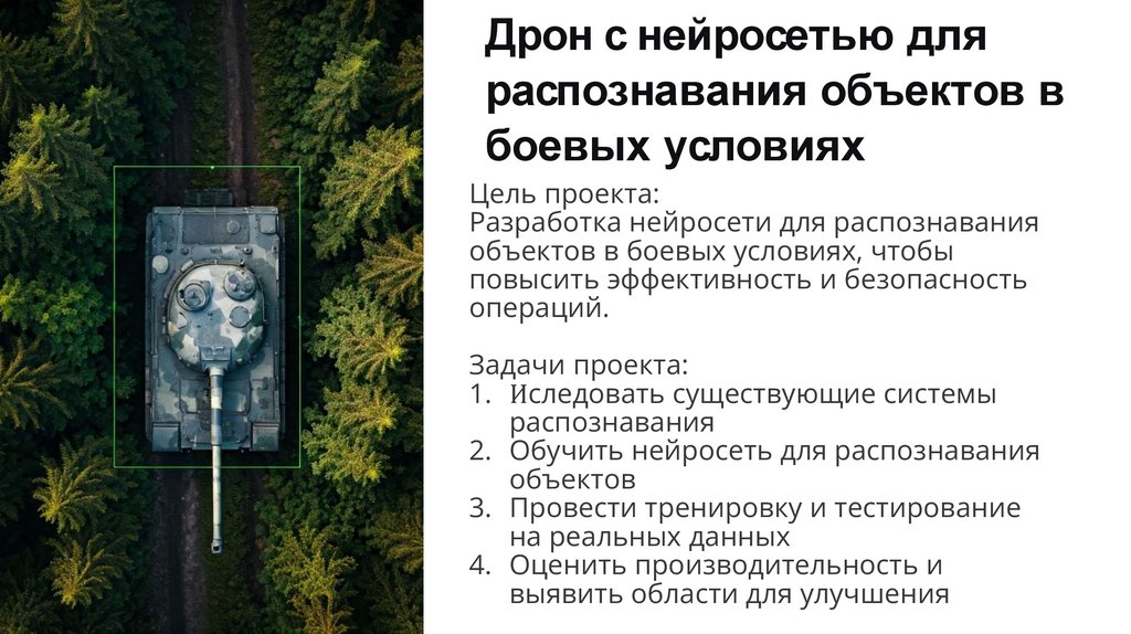 «Дрон с нейросеть ю дл я распознав ания объ ектов в боев ы х усл ов иях »