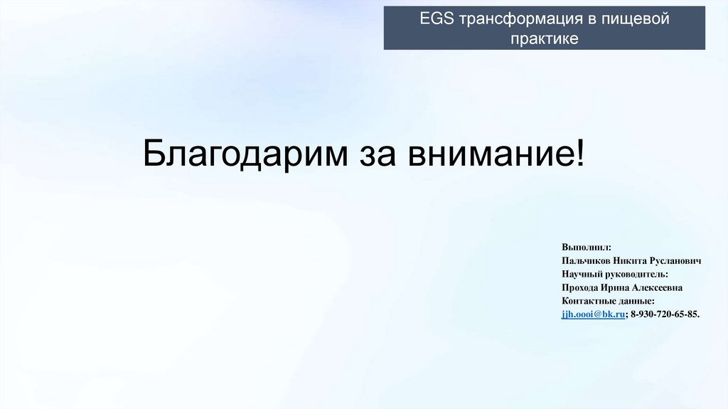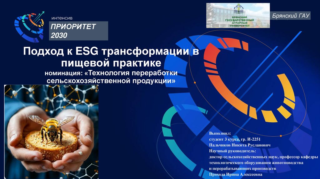 1. Подход к ESG трансформации в пищевой практике номинация: «Технология переработки сельскохозяйственной продукции»