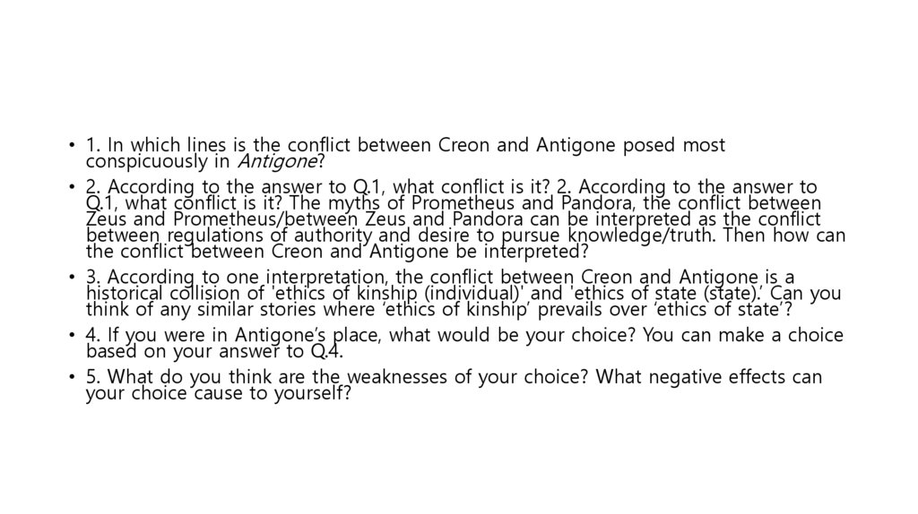 • 3. According to one interpretation, the conflict between Creon and Antigone is a