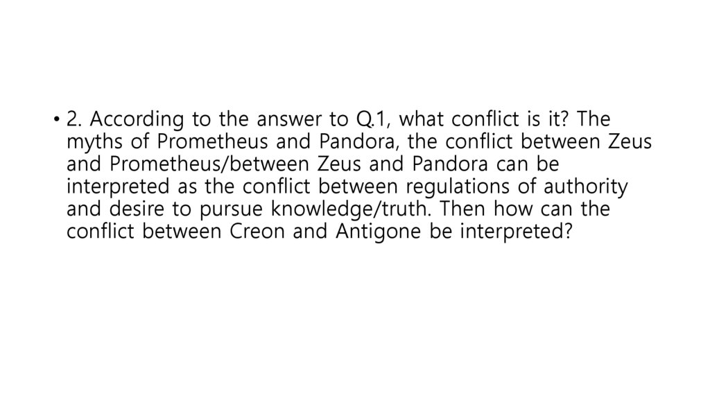 • 2. According to the answer to Q.1, what conflict is it? Themyths of Prometheus and Pandora, the conflict between Zeus