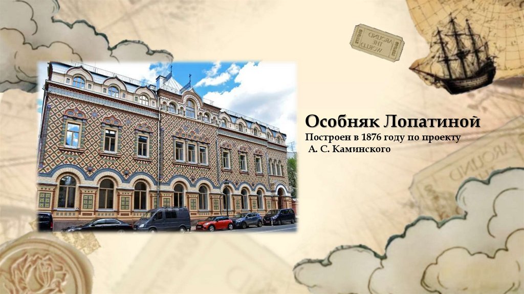 Особняк ЛопатинойПостроен в 1876 году по проекту