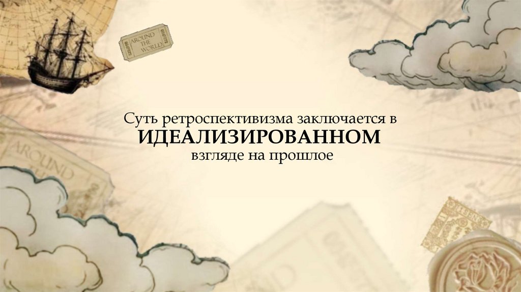 Суть ретроспективизма заключается вИДЕАЛИЗИРОВАННОМ