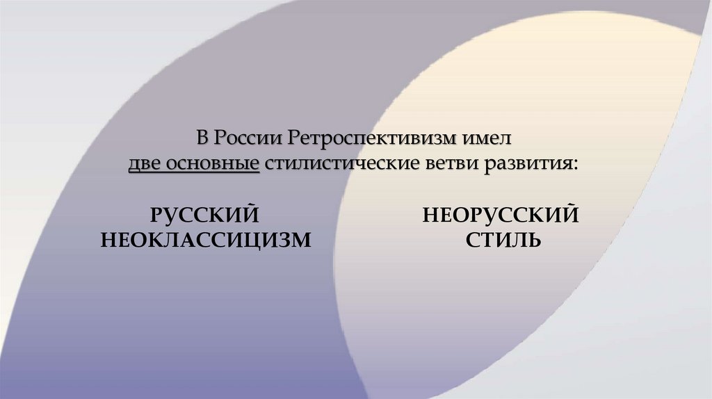 В России Ретроспективизм имелдве основные стилистические ветви развития: