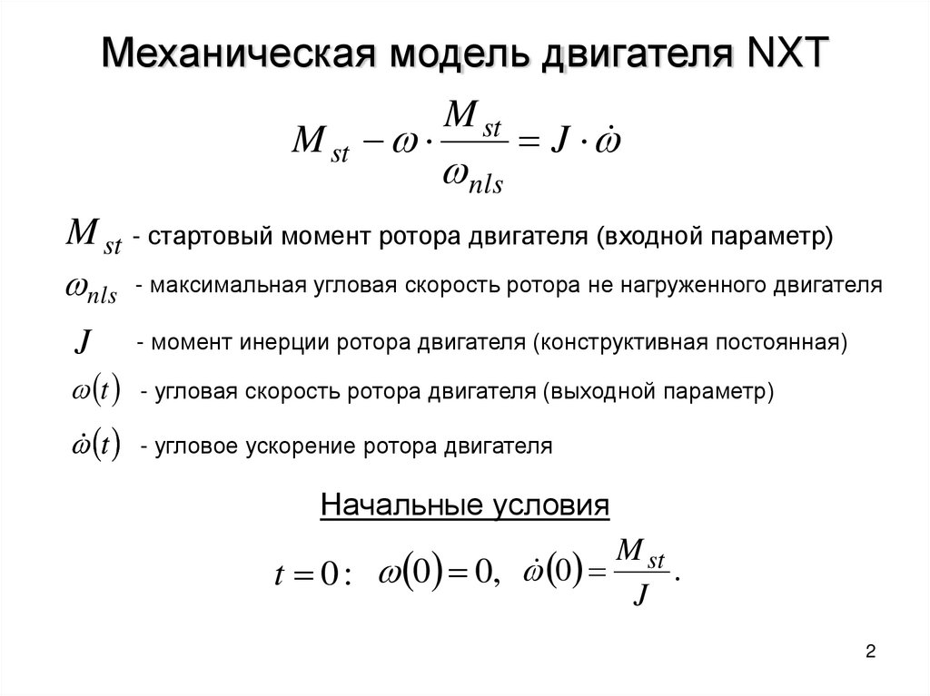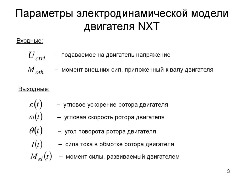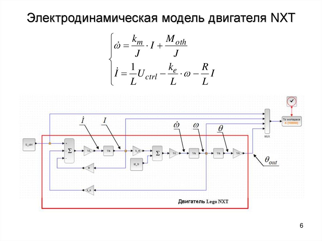 электродинамическую модель двигателя NXT. С помощью этой модели
