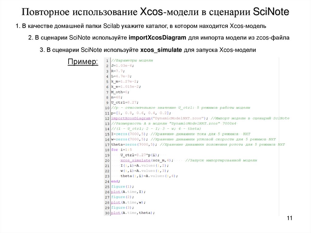 2. В сценарии SciNote используйте importXcosDiagram для импорта модели из zcos-файла