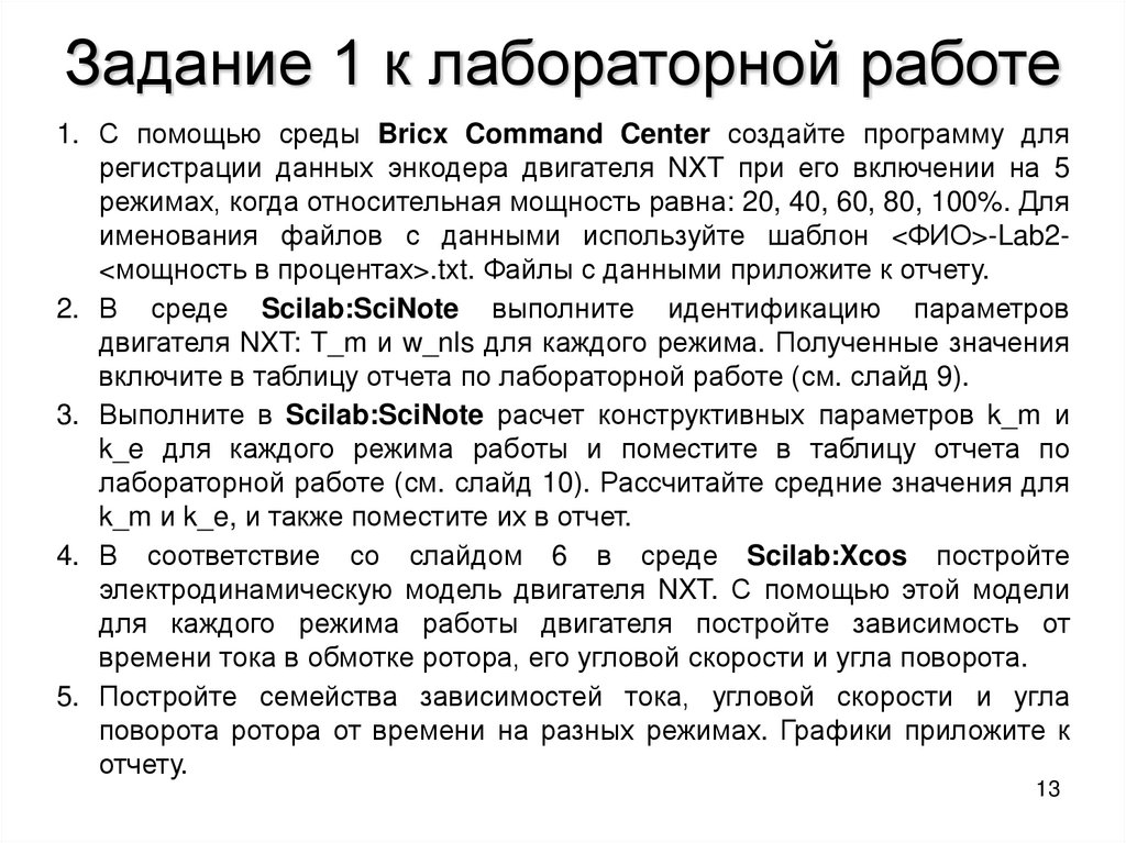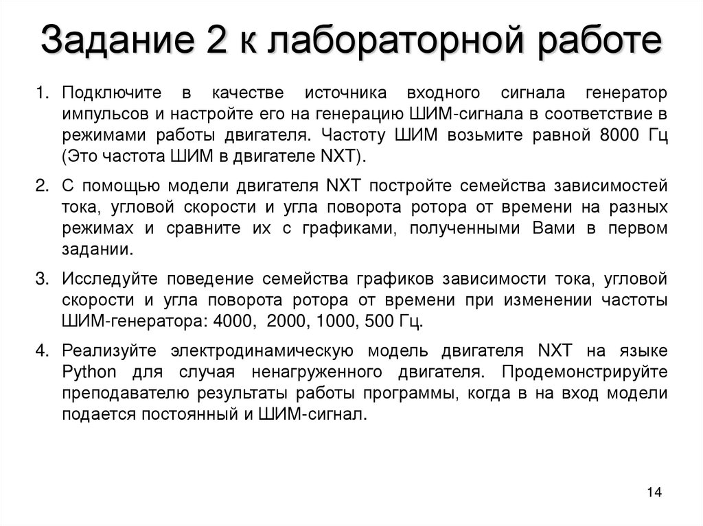 4. Реализуйте электродинамическую модель двигателя NXT на языке