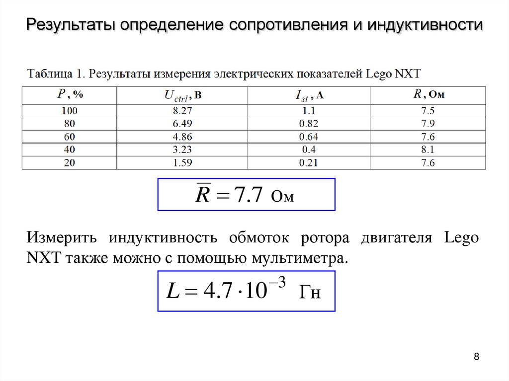 R 7.7 ОмИзмерить индуктивность обмоток ротора двигателя Lego