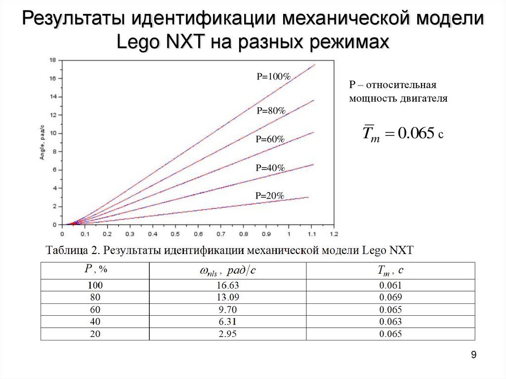 9. Результаты идентификации механической модели Lego NXT на разных режимах