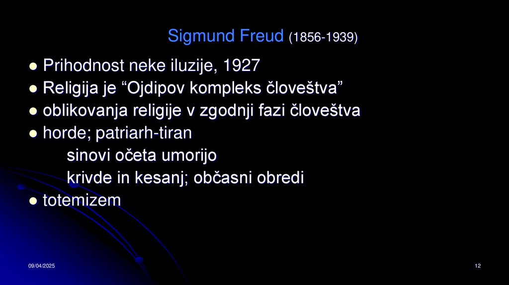 Sigmund Freud (1856-1939)Prihodnost neke iluzije, 1927