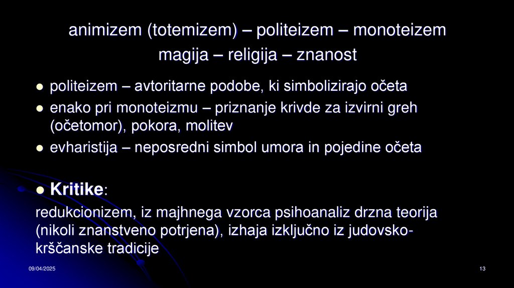 krivde...; pojem boga – simbol za pra/očetovsko podobo)