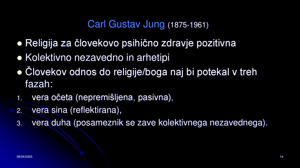 Carl Gustav Jung (1875-1961)Religija za človekovo psihično zdravje pozitivna