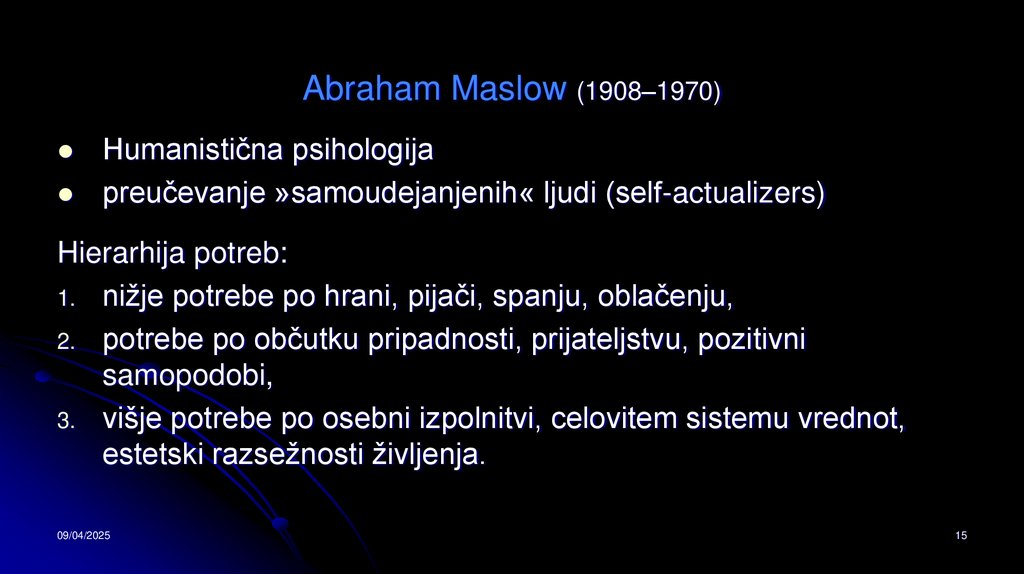Abraham Maslow (1908–1970)Humanistična psihologija