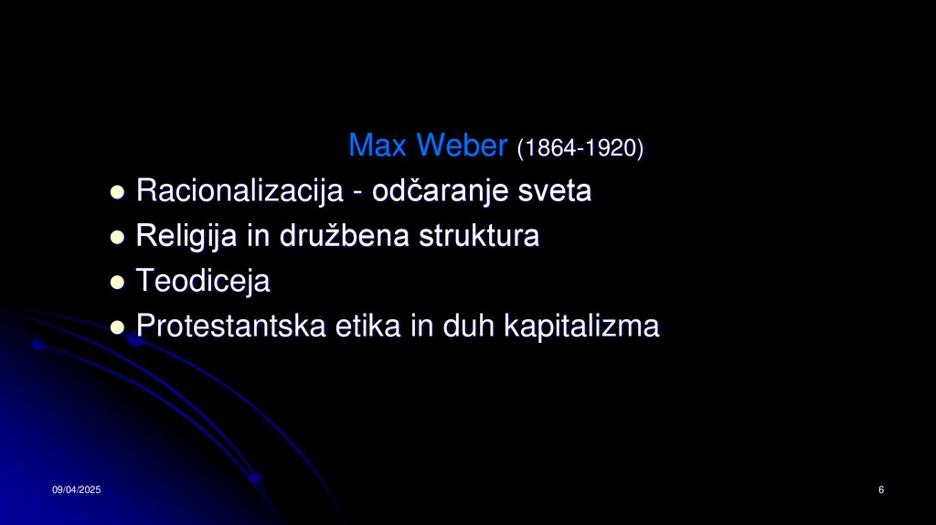 Max Weber (1864-1920)Racionalizacija - odčaranje sveta
