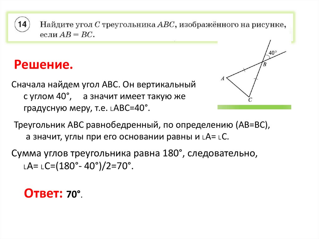 Решение.Сначала найдем угол АВС. Он вертикальный