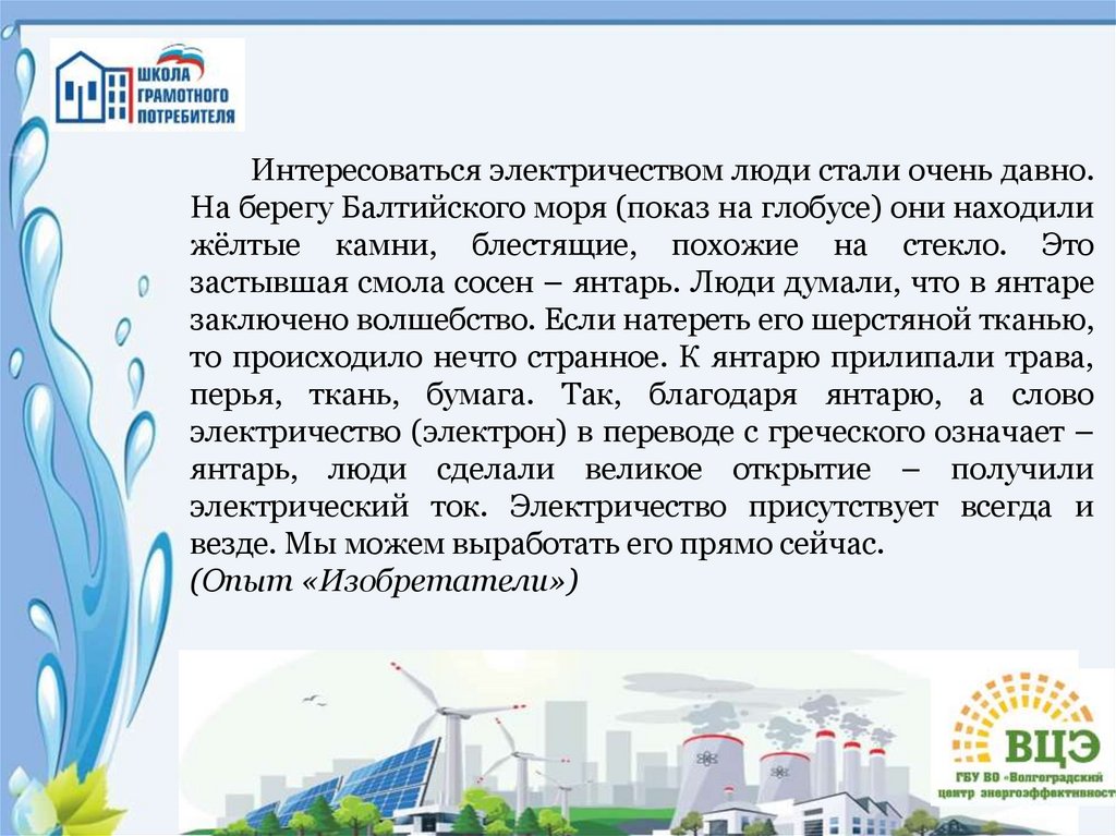 Интересоваться электричеством люди стали очень давно.На берегу Балтийского моря (показ на глобусе) они находили