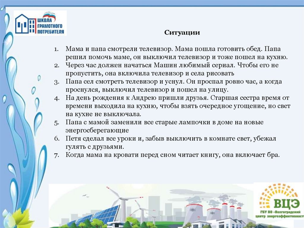Ситуации1. Мама и папа смотрели телевизор. Мама пошла готовить обед. Папа