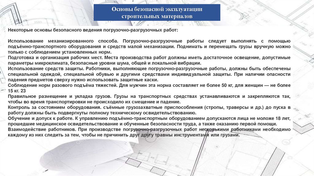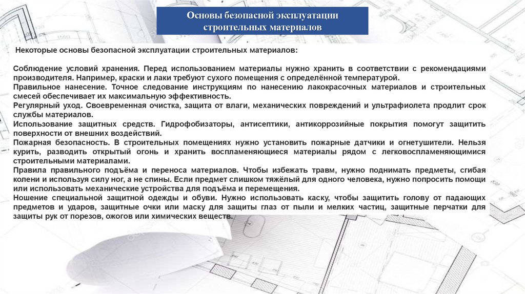 Некоторые основы безопасной эксплуатации строительных материалов: