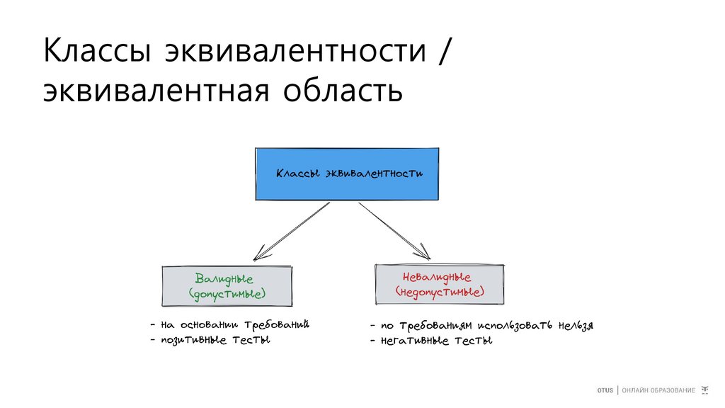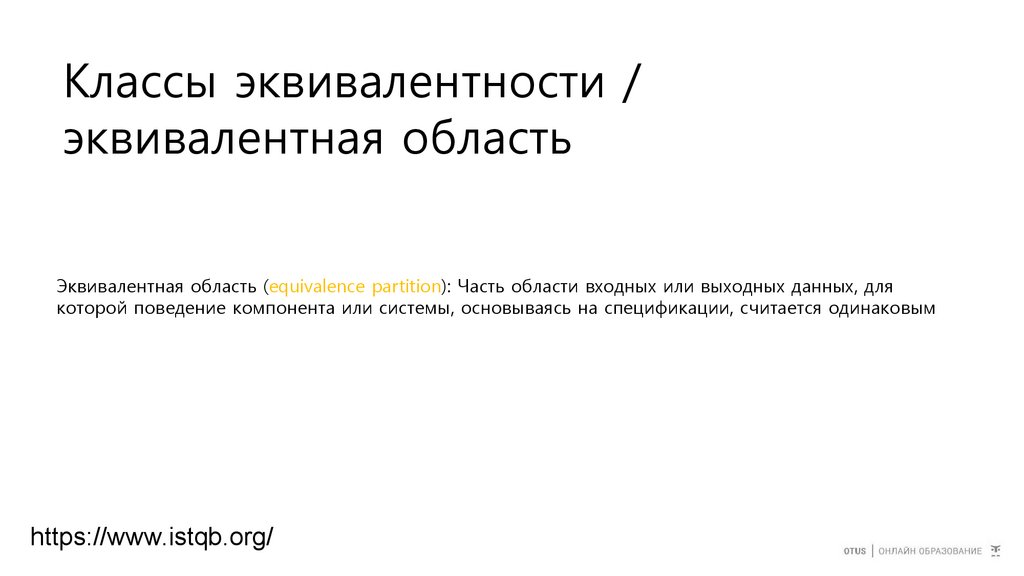 Эквивалентная область (equivalence partition): Часть области входных или выходных данных, для