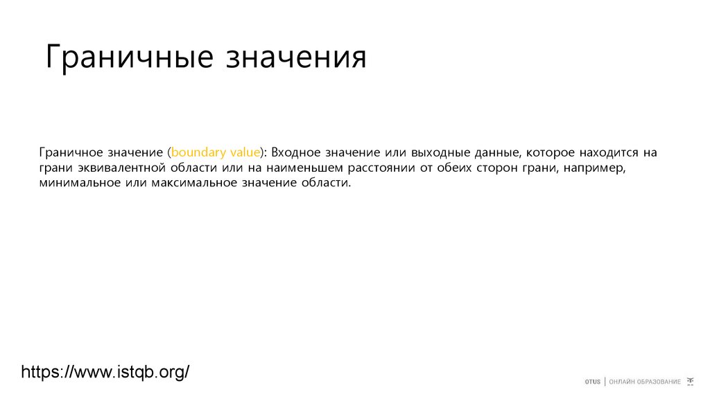 Граничные значенияГраничное значение (boundary value): Входное значение или выходные данные, которое находится на