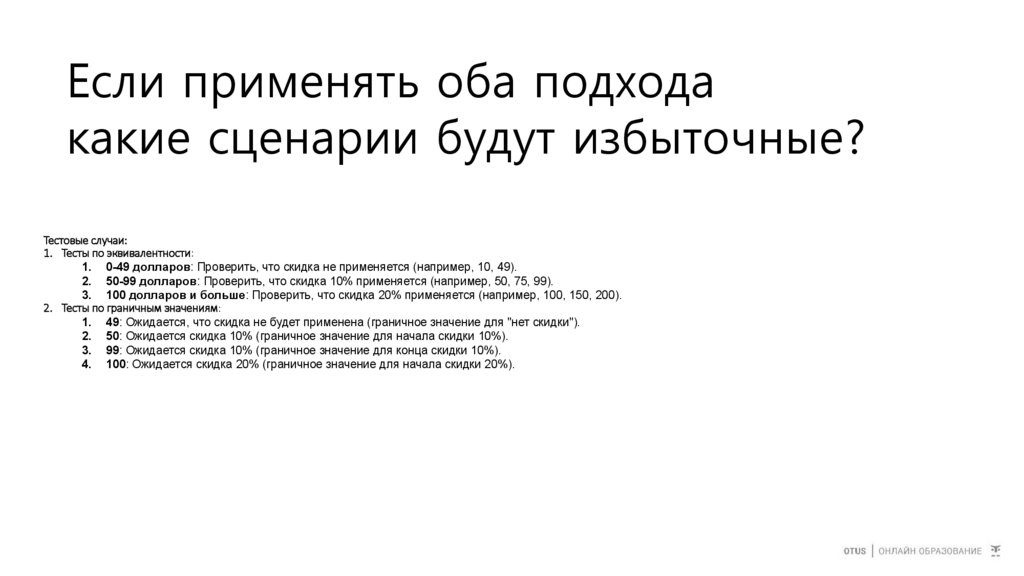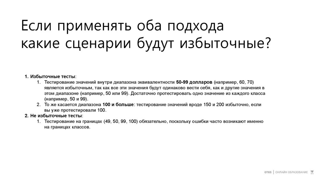 2. То же касается диапазона 100 и больше: тестирование значений вроде 150 и 200 избыточно, если