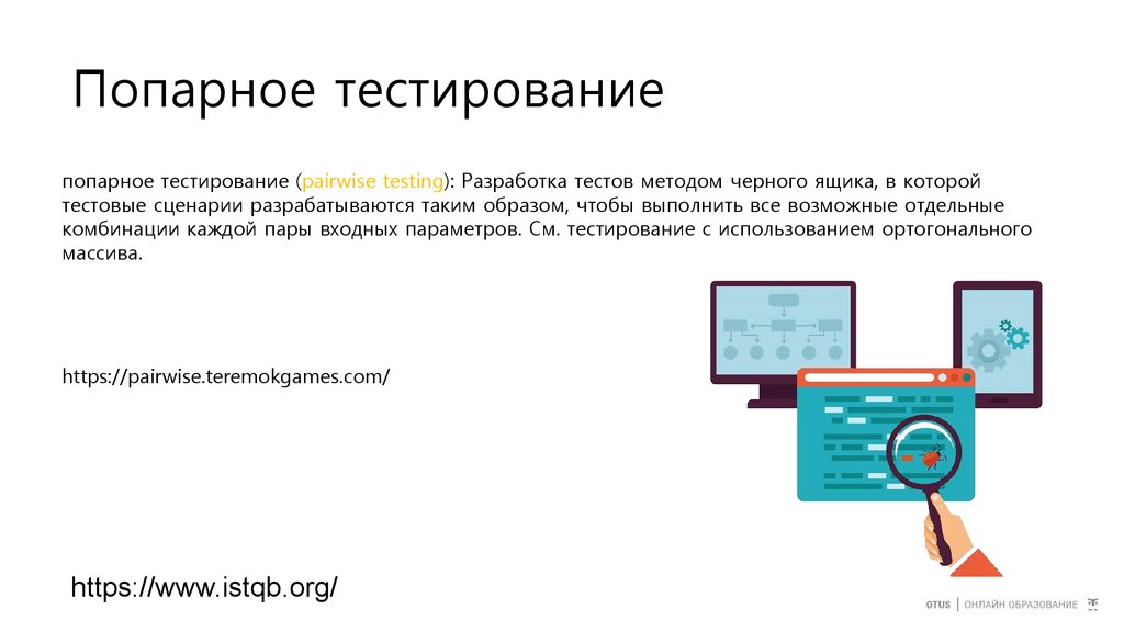 Попарное тестированиепопарное тестирование (pairwise testing): Разработка тестов методом черного ящика, в которой