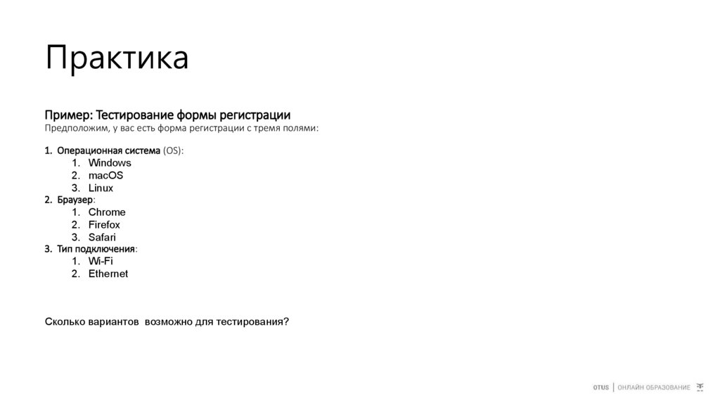 • Например, пара (Windows, Chrome), (Windows, Firefox), (Windows, Safari), (macOS, Chrome), и т.д., все учтены.