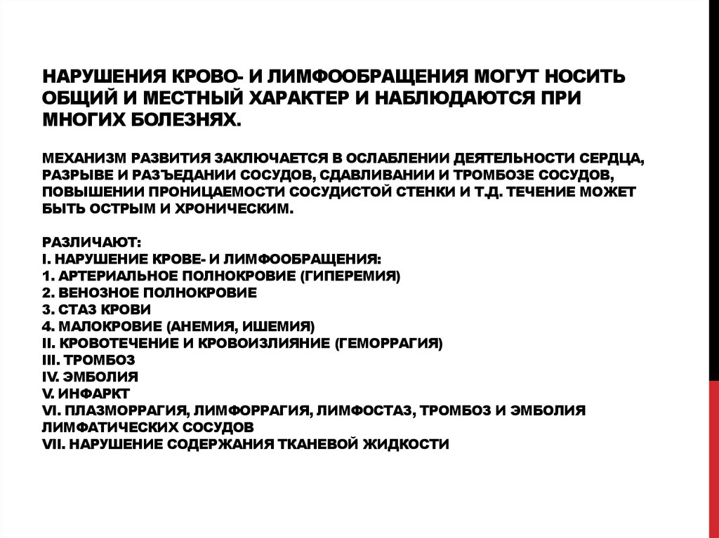 2. Нарушения крово- и лимфообращения могут носить общий и местный характер и наблюдаются при многих болезнях. Механизм развития