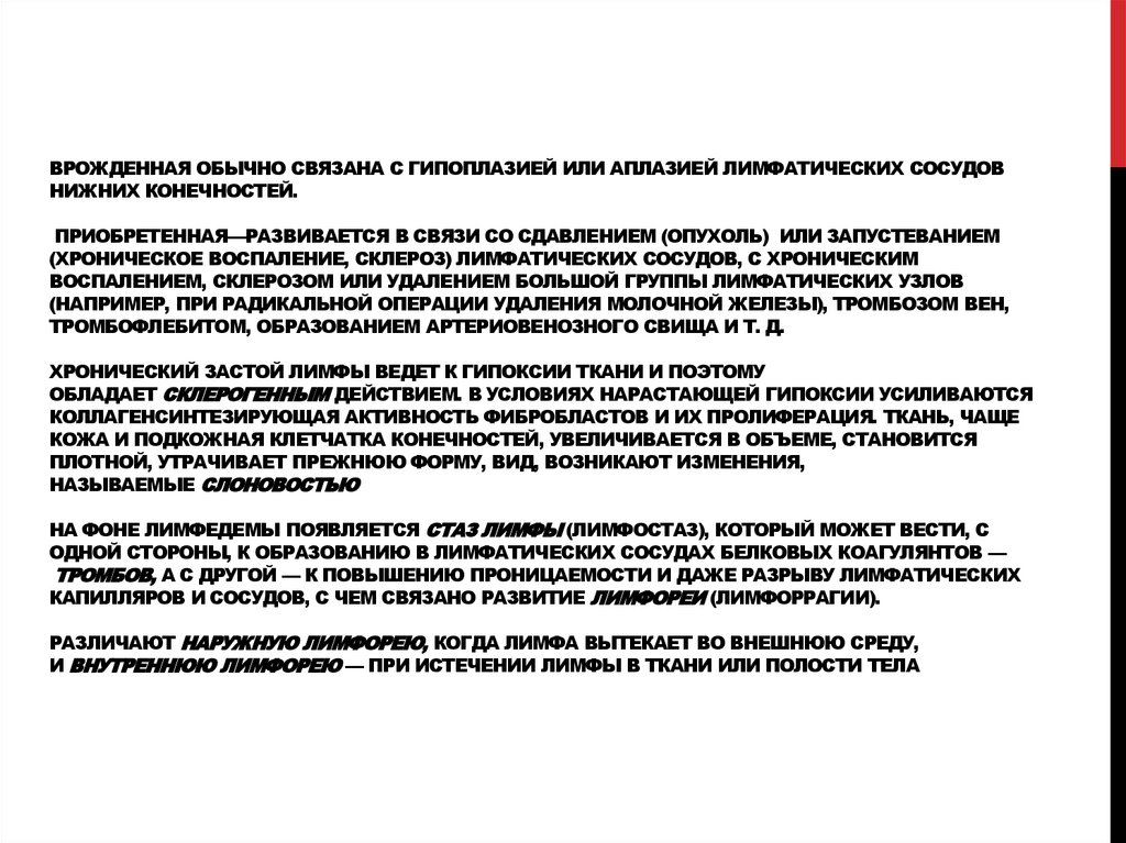 13. Врожденная обычно связана с гипоплазией или аплазией лимфатических сосудов нижних конечностей. приобретенная—развивается в