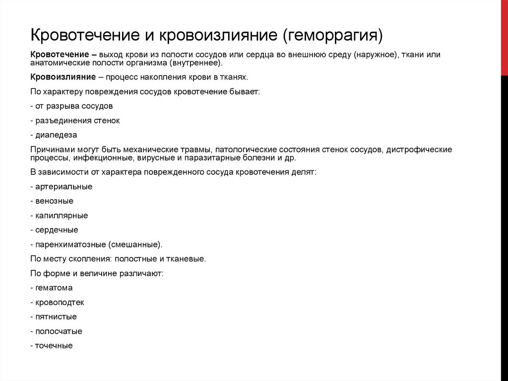 Кровотечение и кровоизлияние (геморрагия)Кровотечение – выход крови из полости сосудов или сердца во внешнюю среду (наружное), ткани или