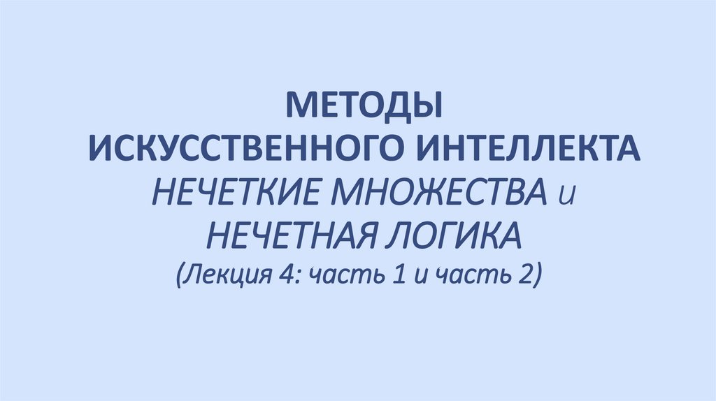 1. МЕТОДЫ ИСКУССТВЕННОГО ИНТЕЛЛЕКТА НЕЧЕТКИЕ МНОЖЕСТВА и НЕЧЕТНАЯ ЛОГИКА (Лекция 4: часть 1 и часть 2)
