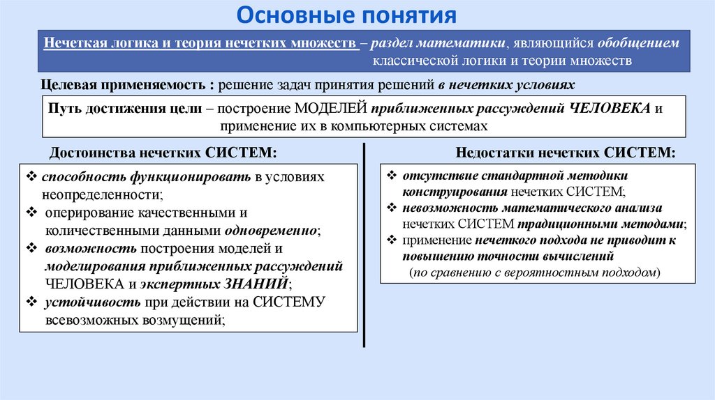 Основные понятияНечеткая логика и теория нечетких множеств – раздел математики, являющийся обобщением