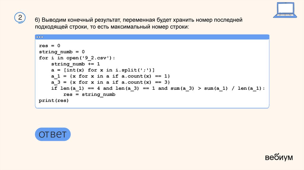 26) Выводим конечный результат, переменная будет хранить номер последней