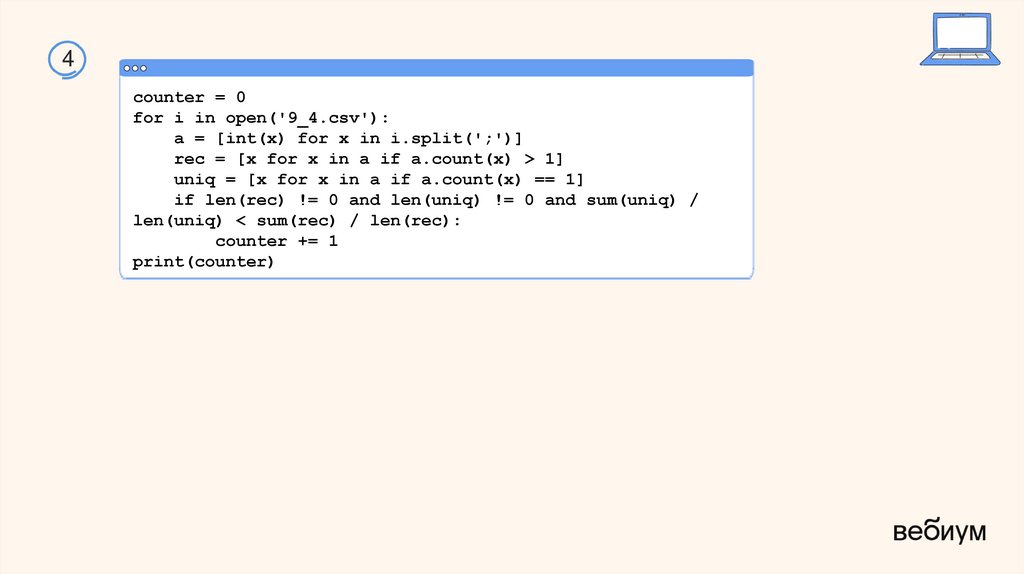 – среднее ариф метическое всех неповторяющихся чисел строки меньше, чем среднее