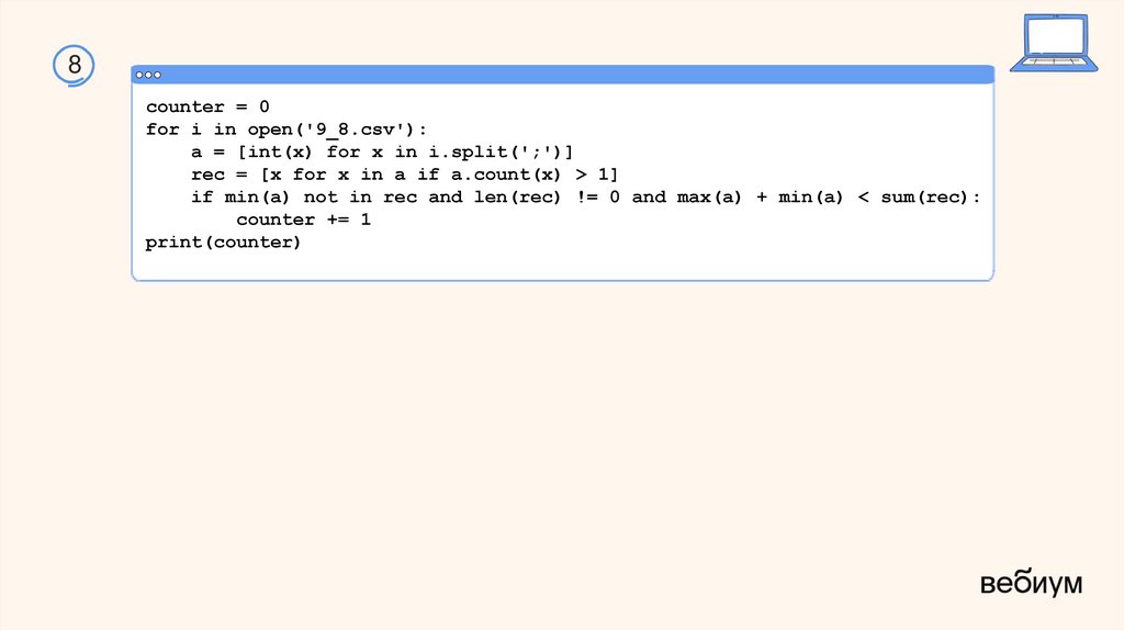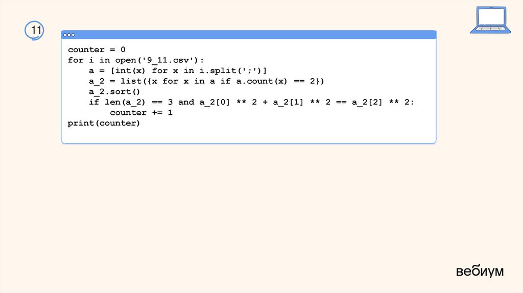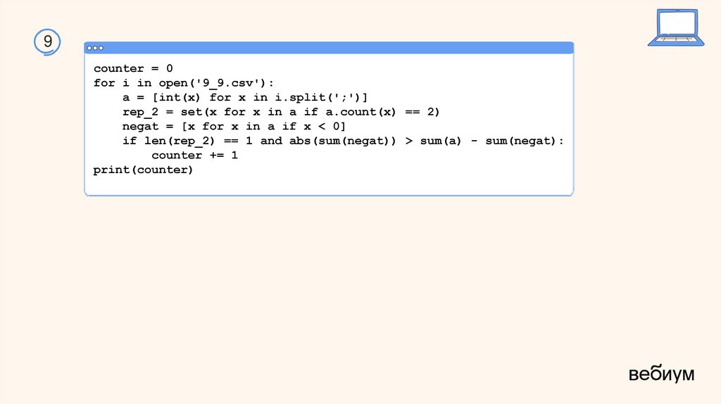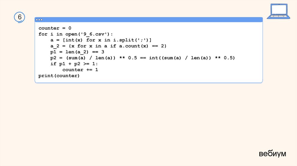 9Откройте ф айл электронной таблицы, содержащей в каждой строке шесть целых чисел.