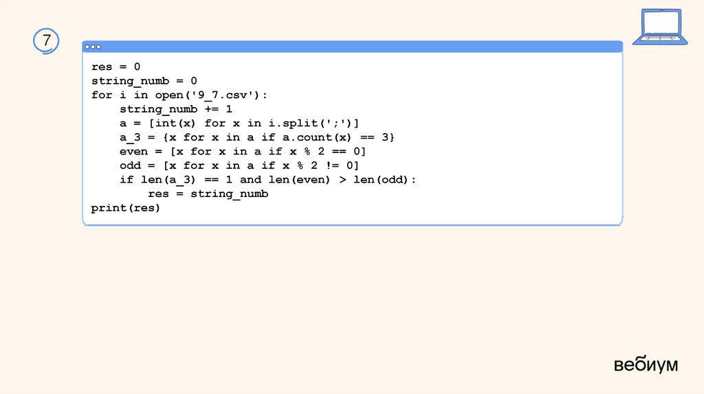 7Откройте ф айл электронной таблицы, содержащей в каждой строке семь натуральных