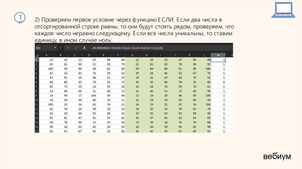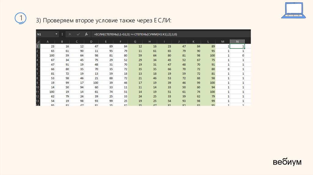 12) Проверяем первое условие через ф ункцию Е СЛИ. Е сли два числа в