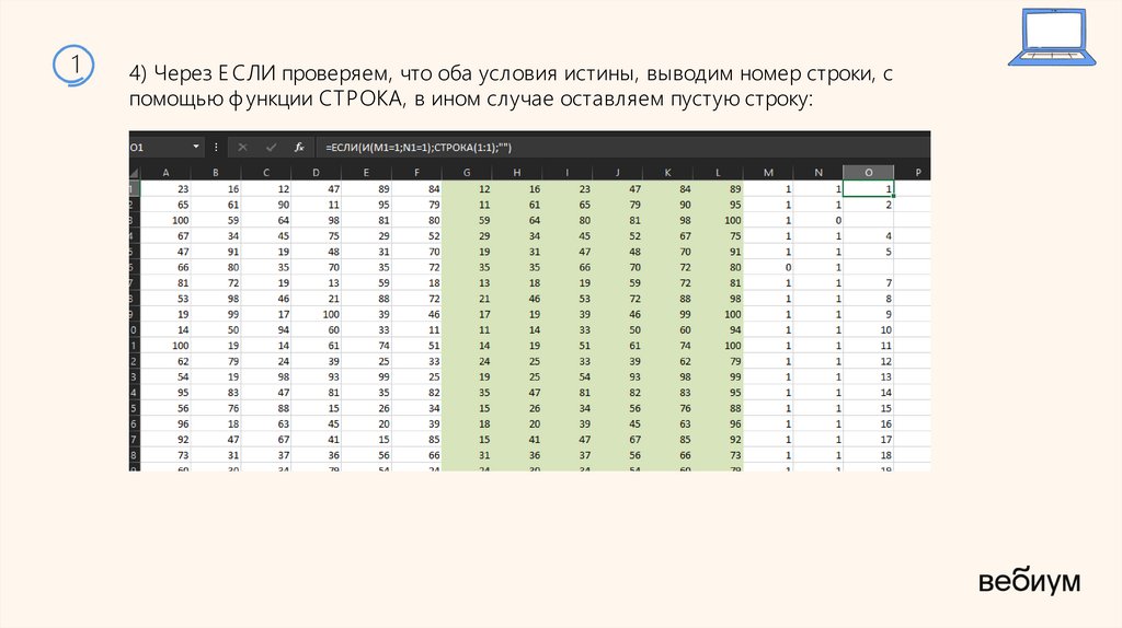 14) Через Е СЛИ проверяем, что оба условия истины, выводим номер строки, с