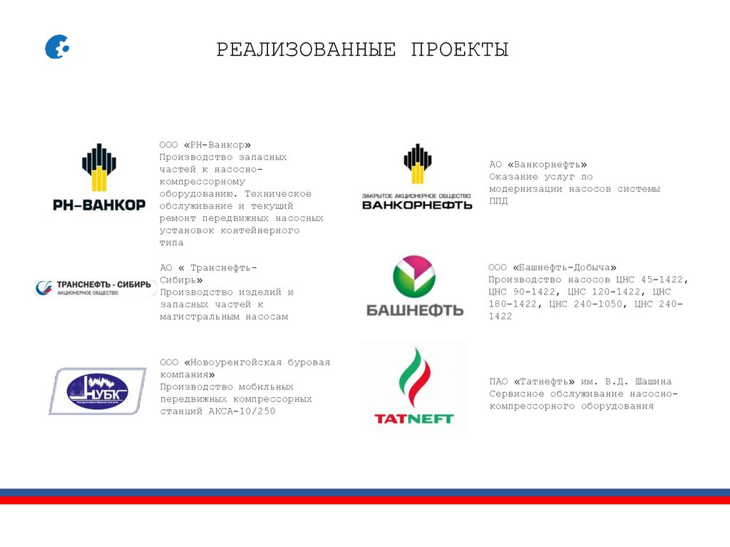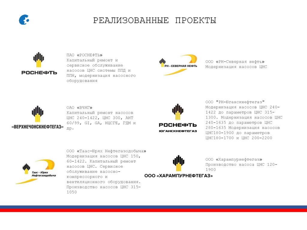 РЕАЛИЗОВАННЫЕ ПРОЕКТЫПАО «РОСНЕФТЬ»