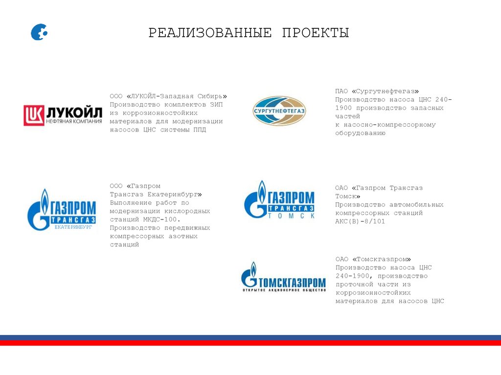 РЕАЛИЗОВАННЫЕ ПРОЕКТЫООО «ЛУКОЙЛ-Западная Сибирь»