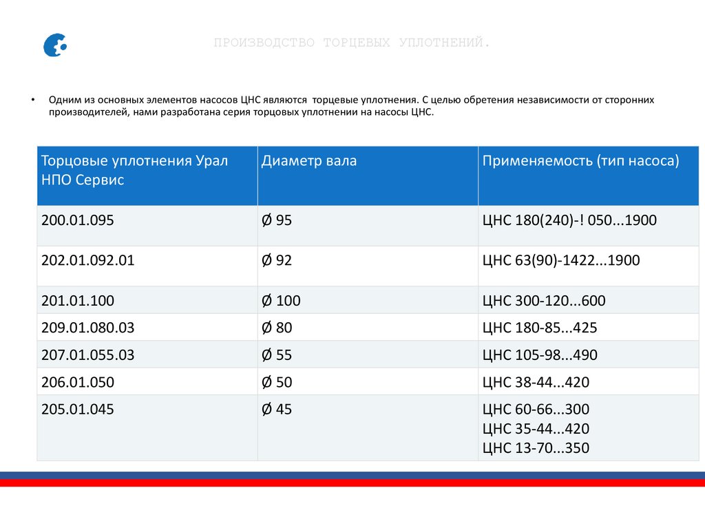 насосов ЦНС. Сервисное