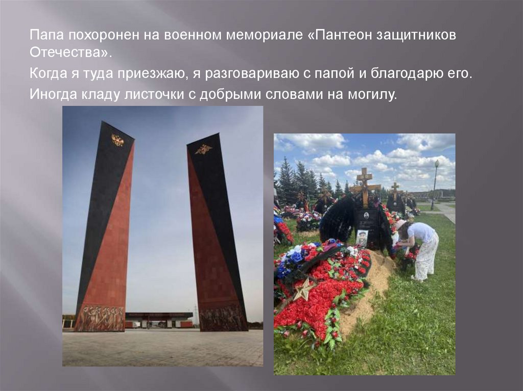 Когда я туда приезжаю, я разговариваю с папой и благодарю его.