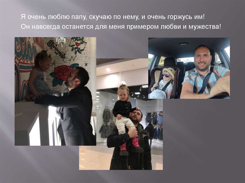 Я очень люблю папу, скучаю по нему, и очень горжусь им!Он навсегда останется для меня примером любви и мужества!