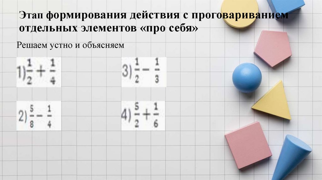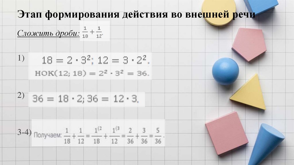 Этап формирования действия во внешней речиСложить дроби: