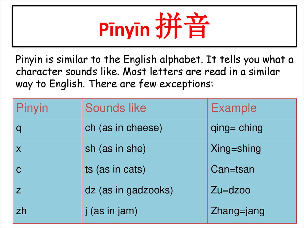 Pīnyīn 拼音Pinyin is similar to the English alphabet. It tells you what a