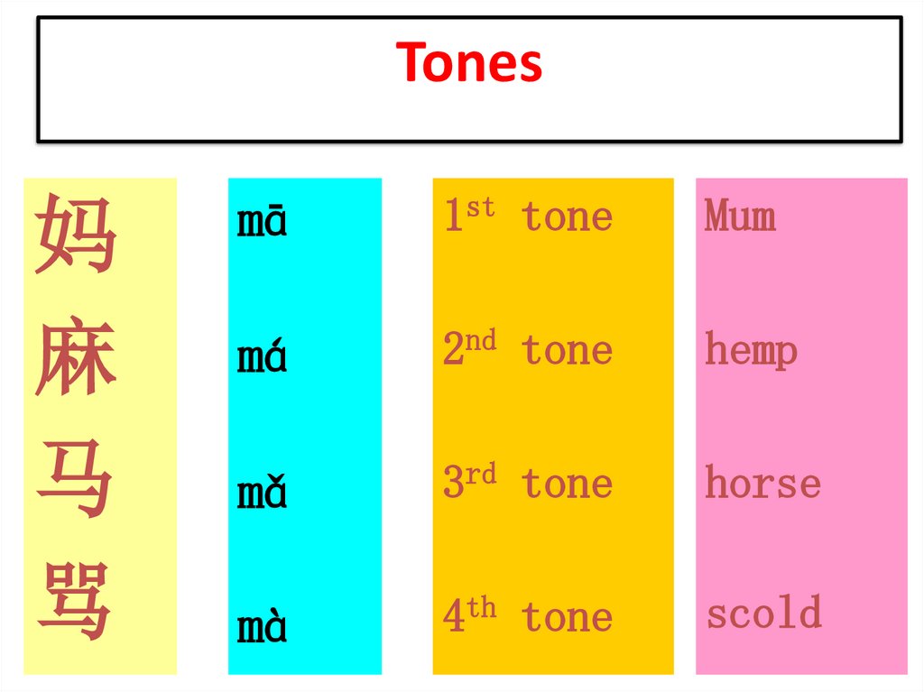 The Four Tones:Chinese is a tonal language. This means that the meaning of a