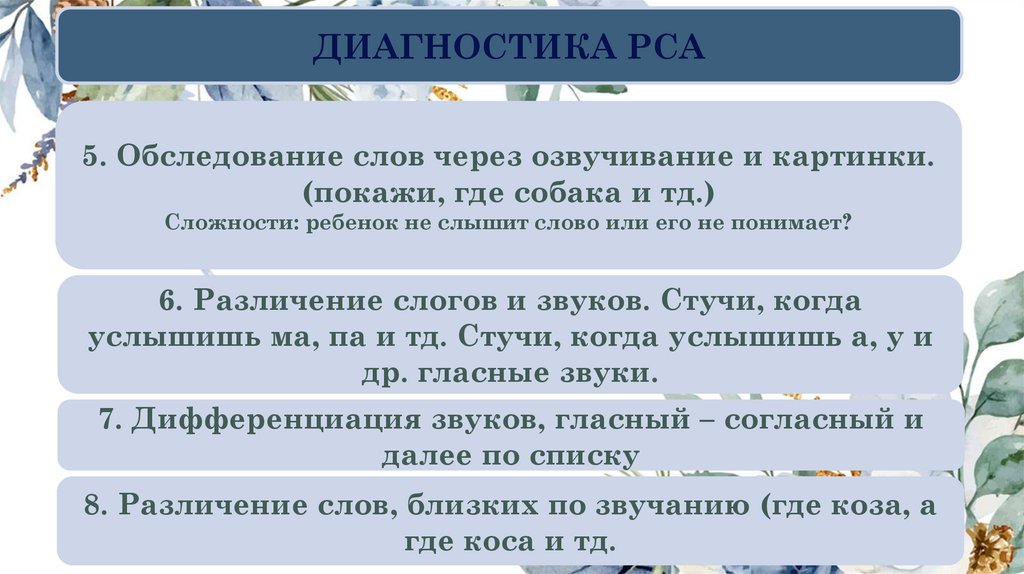 ДИАГНОСТИКА РСА3. Проверяется: имеются ли у ребенка натуральные
