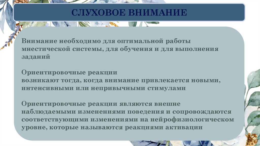 СЛУХОВОЕ ВНИМАНИЕВнимание необходимо для оптимальной работы