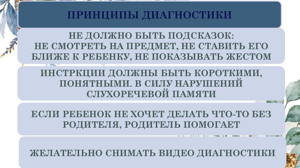 ПРИНЦИПЫ ДИАГНОСТИКИНЕ ДОЛЖНО БЫТЬ ПОДСКАЗОК:
